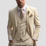 Experience the perfect blend of modern style and classic elegance with this men's three-piece suit. Tailored to a slim fit, this ensemble is crafted from a high-quality blend, making it an ideal choice for weddings and formal occasions. The set includes a blazer, waistcoat, and trousers, each designed to ensure a polished and sophisticated appearance. The subtle lapels on the blazer add a touch of understated elegance, while the fitted cut allows for natural ease of movement and sleek lines. The waistcoat enhances the overall look with quiet sophistication, and the trousers complete the balanced silhouette, making this suit a versatile cornerstone of formal menswear.