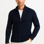 Experience the ideal blend of comfort and sophistication with our Men's Classic Ribbed Knit Cardigan. This stylish piece is expertly designed for layering, making it perfect for both casual and formal occasions. The lightweight fabric ensures comfort in transitional weather, while the ribbed texture adds a touch of elegance to your ensemble.